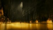 Smaug ha deciso di scatenarsi dando fuoco a Pontelagolungo e ai suoi abitanti. Mentre i nani, inermi, guardano la scena dalla montagna, in un delirio di fughe disperate solo Bard decide di combattere il drago riuscendo in extremis a penetrare l'unico punto scoperto della sua dura scorza con una sola grande freccia. Sconfitta la creatura si apre uno scenario ancora più truce: la montagna è libera e il tesoro dei nani incustodito, la notizia si sparge in fretta e, vista la bramosia di Thorin nel tenere l'oro per sè, alle porte si prepara un conflitto tra l'esercito degli elfi e degli uomini (desiderosi di vedere rispettata la promessa fattagli dal nano ora "re sotto la montagna"), quello dei nani accorsi a difendere il loro simile e il grande nemico di Thorin, desideroso d'oro e vendetta. In mezzo a tutto ciò Bilbo ha rubato la bramata Arkengemma e deve decidere che farne.