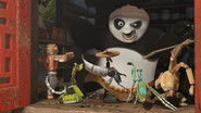 Po è un giovane panda il cui padre (un'oca cignoode) gestisce un piccolo ristorante la cui specialità sono i noodles cucinati secondo una ricetta segreta. Po fa il cameriere ma intanto sogna di poter essere un eroe del kung fu. Finché un giorno, in seguito a una predizione che lo vedrebbe come l'eletto Guerriero Dragone, viene associato alla scuola del Maestro Shifu. Ha così modo di incontrare i suoi idoli. Sono i Cinque cicloni: Tigre, Gru, Mantide, Vipera e Scimmia i quali non sono particolarmente felici di vederlo nelle vicinanze. Le speranze di farne un vero guerriero si affievoliscono progressivamente e il giorno in cui Tai Lung, il vendicativo e fortissimo leopardo delle nevi, si libera dalla prigionia e parte alla ricerca di Shifu e del Guerriero le cose sembrano mettersi male. I Cinque sono pronti a sacrificarsi ma Po riserverà loro delle sorprese.