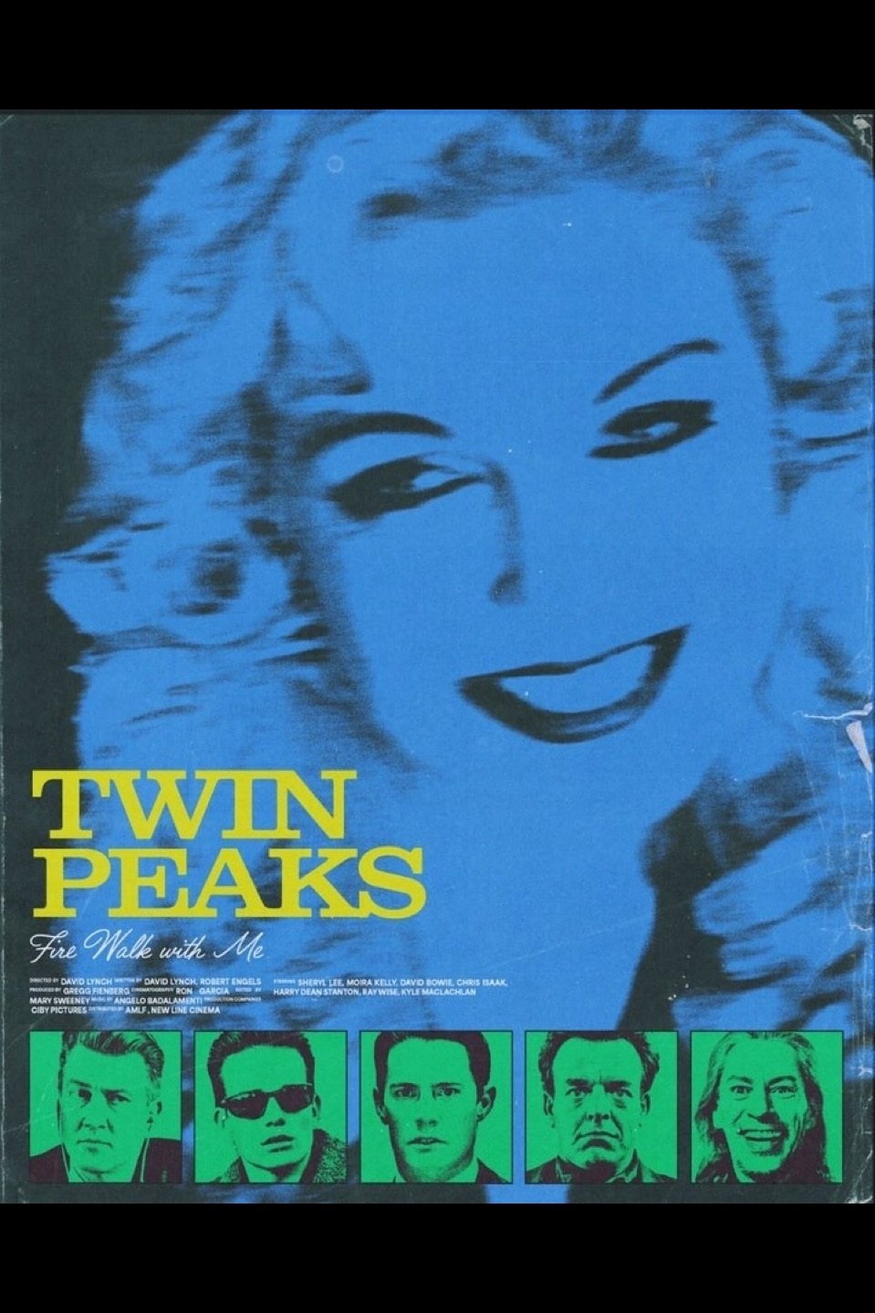 Cast: Sheryl Lee | Ray Wise | Mädchen Amick | Dana Ashbrook | Phoebe Augustine | David Bowie | Eric DaRe | Miguel Ferrer | Pamela Gidley | Heather Graham | Chris Isaak | Moira Kelly | Peggy Lipton | David Lynch | James Marshall | Jürgen Prochnow | Harry Dean Stanton | Kiefer Sutherland | Lenny Von Dohlen | Grace Zabriskie | Kyle MacLachlan | Frances Bay | Catherine E. Coulson | Michael J. Anderson | Frank Silva | Walter Olkewicz | Al Strobel | Gary Hershberger | Sandra Kinder | Chris Pedersen | Victor Rivers | Rick Aiello | Gary Bullock | Jon Huck | Mike Malone | Joe Berman | Yvonne Roberts | Audra L. Cooper | John Hoobler | Kimberly Ann Cole | Elizabeth McCarthy | C.H. Evans | Paige Bennett | G. Kenneth Davidson | Ingrid Brucato | Chuck McQuary | Margaret Adams | Carlton Lee Russell | Calvin Lockhart | Jonathan J. Leppell | David Brisbin | Andrea Hays | Julee Cruise | Steven Hodges | William Ungerman | Joseph 'Simon' Szeibert | Smokey Hormel | Joseph L. Altruda | James Parks | Jane Jones | Karin Robison | Lorna MacMillan | Philip Anagnos | Anne Gaybis | John Nelson | Simon Shelton |