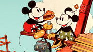 Topolino sta usando un escavatore a vapore in un cantiere. Minni appare su un carro trainato da Pluto, vendendo pacchetti pranzo ai lavoratori per 15 centesimi. Distratto da Minni, Topolino combina vari guai ai danni di Pietro, il caposquadra, che flirta invano con la ragazza. Quando Pietro, spazientito dai disastri di Topolino, inizia a strangolarlo, un fischio annuncia l'ora del pranzo. Topolino si prepara a mangiare un sandwich di pesce, ma esso viene rubato da Pietro. Minni si offre di dargli un pacchetto pranzo gratis. Mentre Topolino sta mangiando il pranzo, Pietro rapisce Minnie dall'alto con una gru.